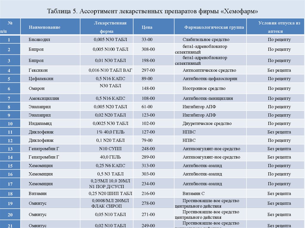 Таблица 7. Структура ассортимента лекарственных препаратов фирмы «Хемофарм» по
