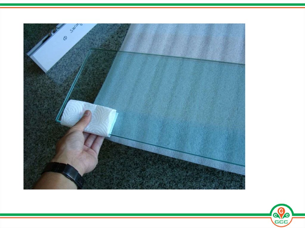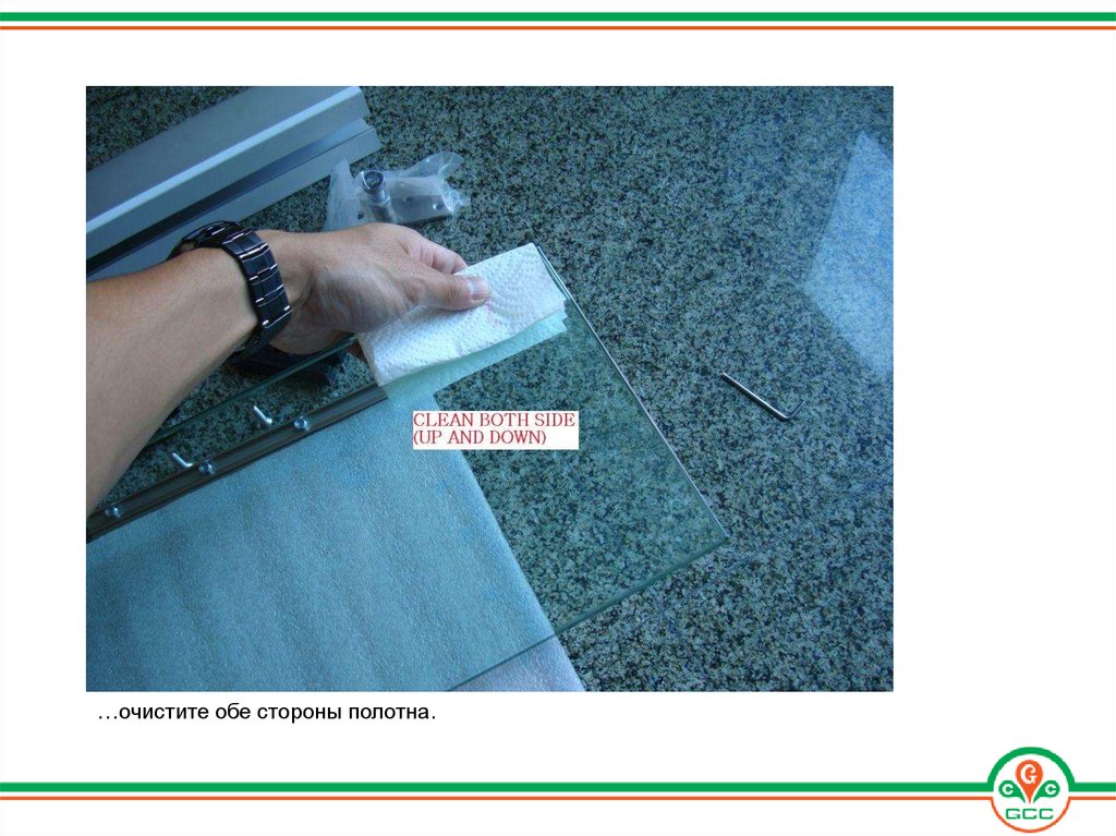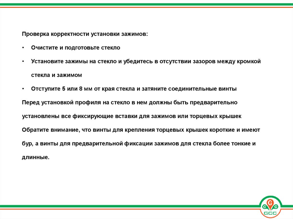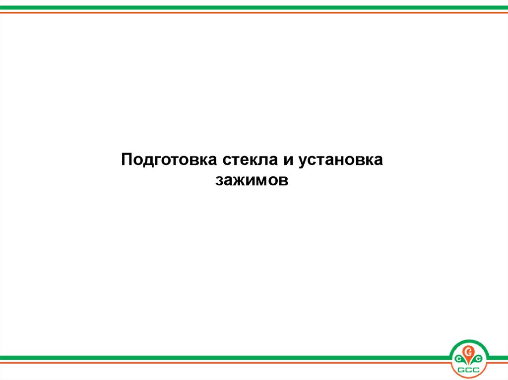 Проверка корректности установки зажимов:Очистите и подготовьте стекло