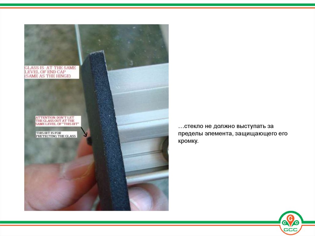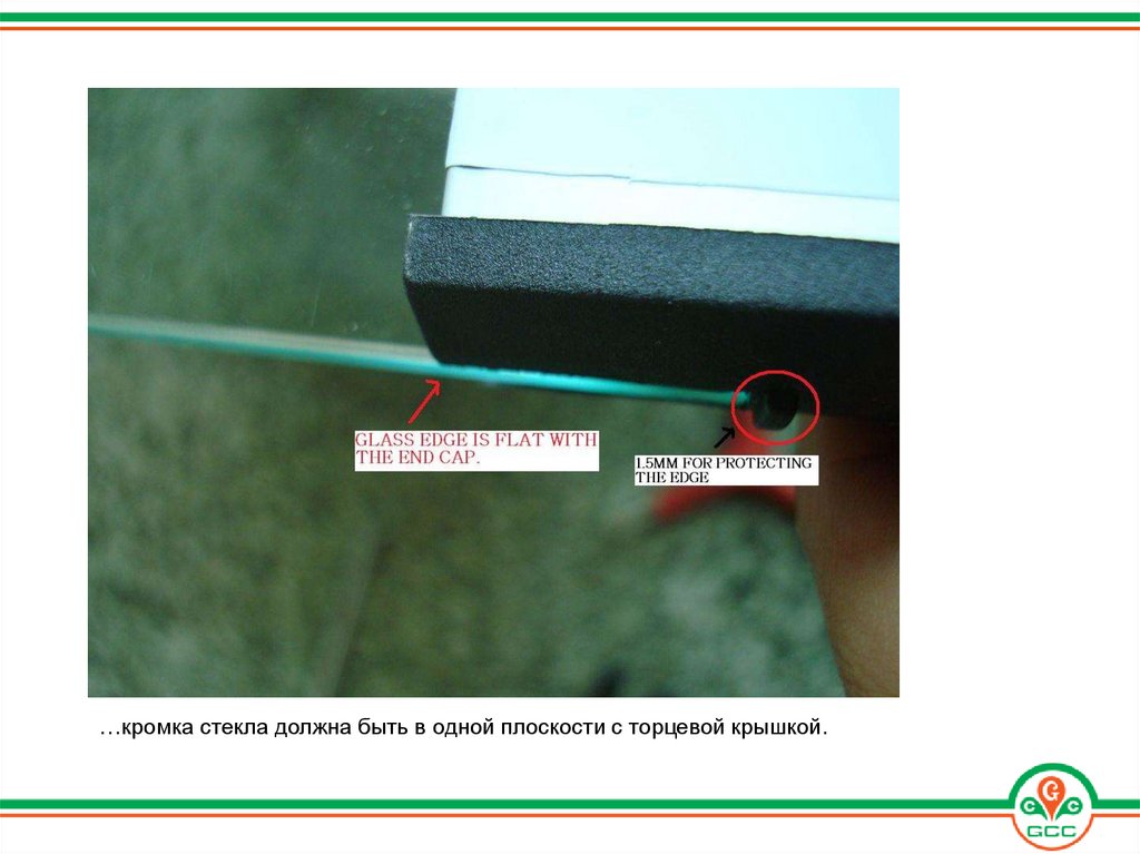…кромка стекла должна быть в одной плоскости с торцевой крышкой.46.