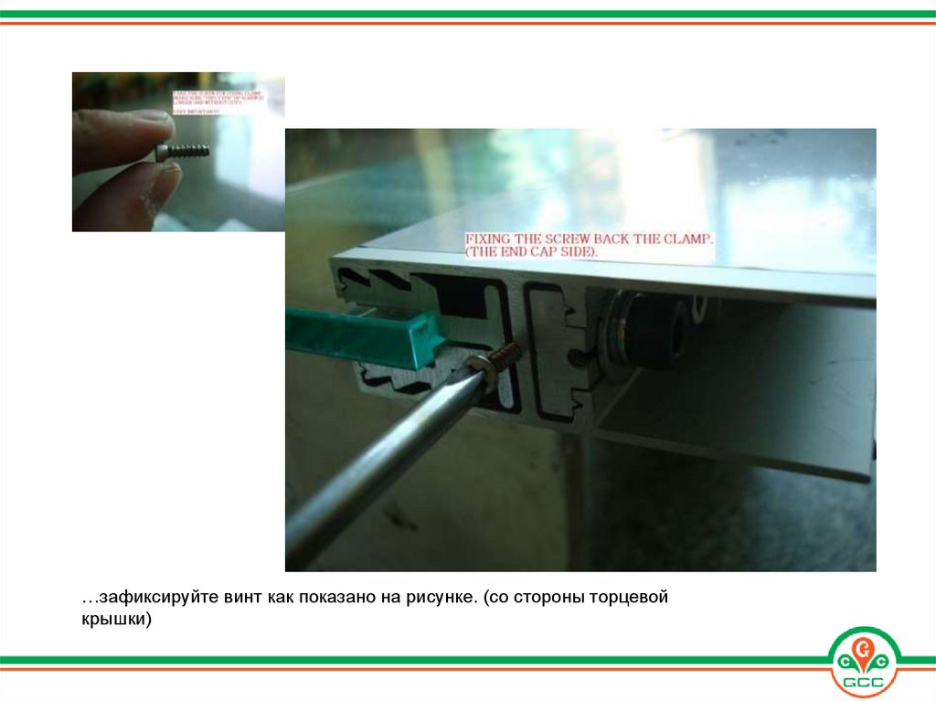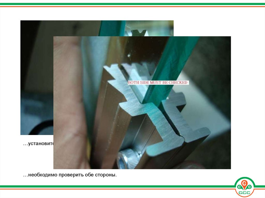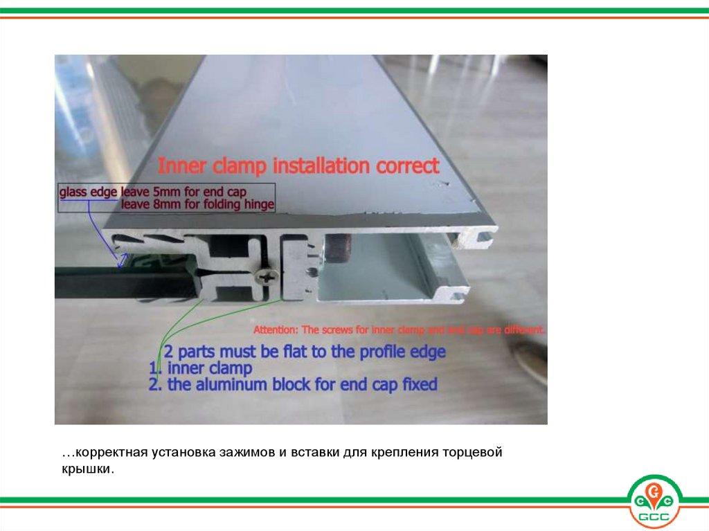 …неправильная установка зажима для стекла и вставки для торцевойкрышки.