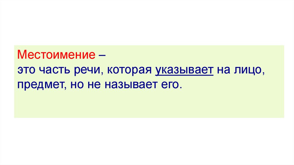 Местоимение –это часть речи, которая указывает на лицо,