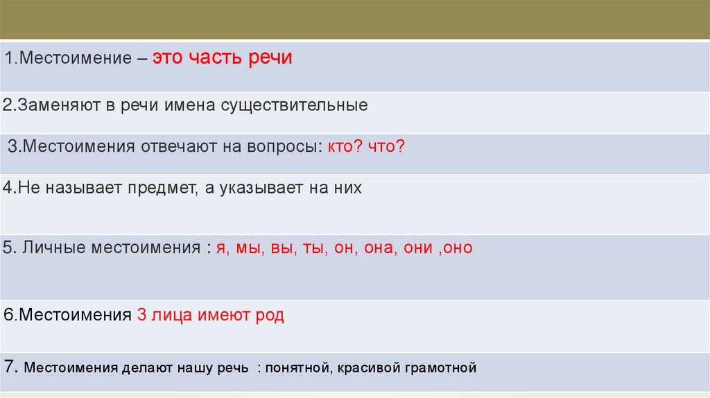 7. Местоимения делают нашу речь : понятной, красивой грамотной
