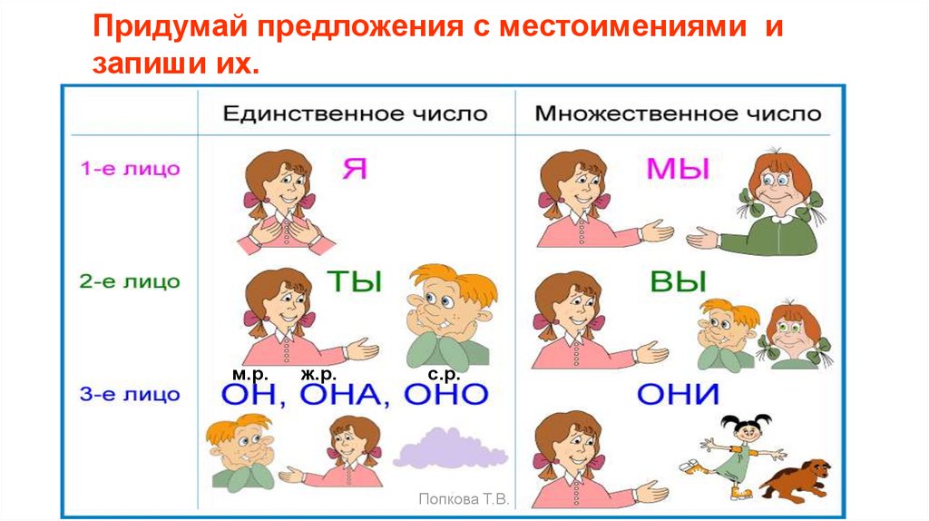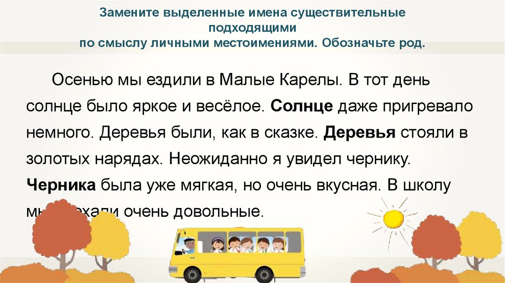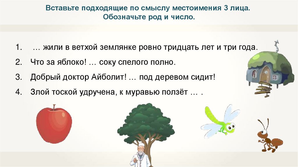 Вставьте подходящие по смыслу местоимения 3 лица.Обозначьте род и число.