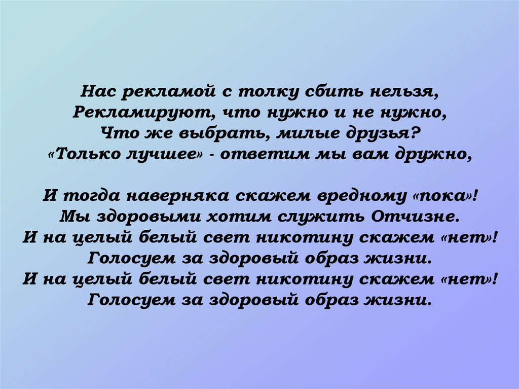 Нас рекламой с толку сбить нельзя,Рекламируют, что нужно и не нужно,