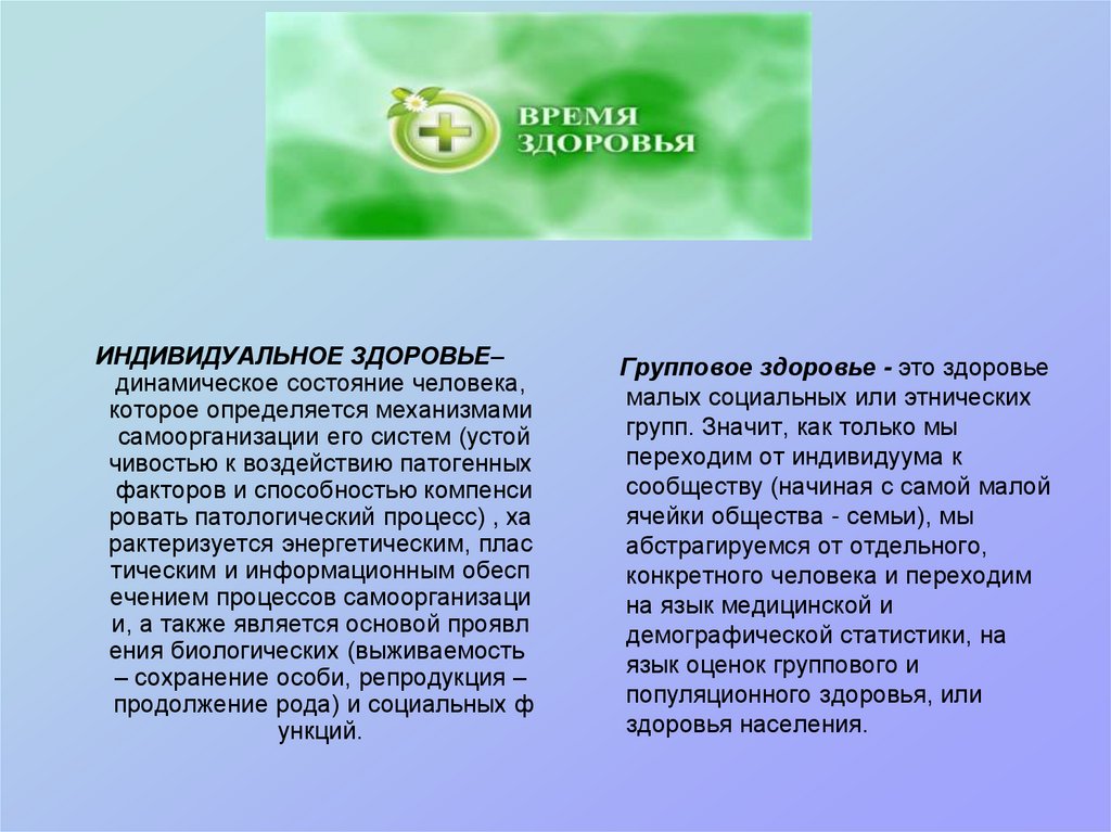 ИНДИВИДУАЛЬНОЕ ЗДОРОВЬЕ–динамическое состояние человека,