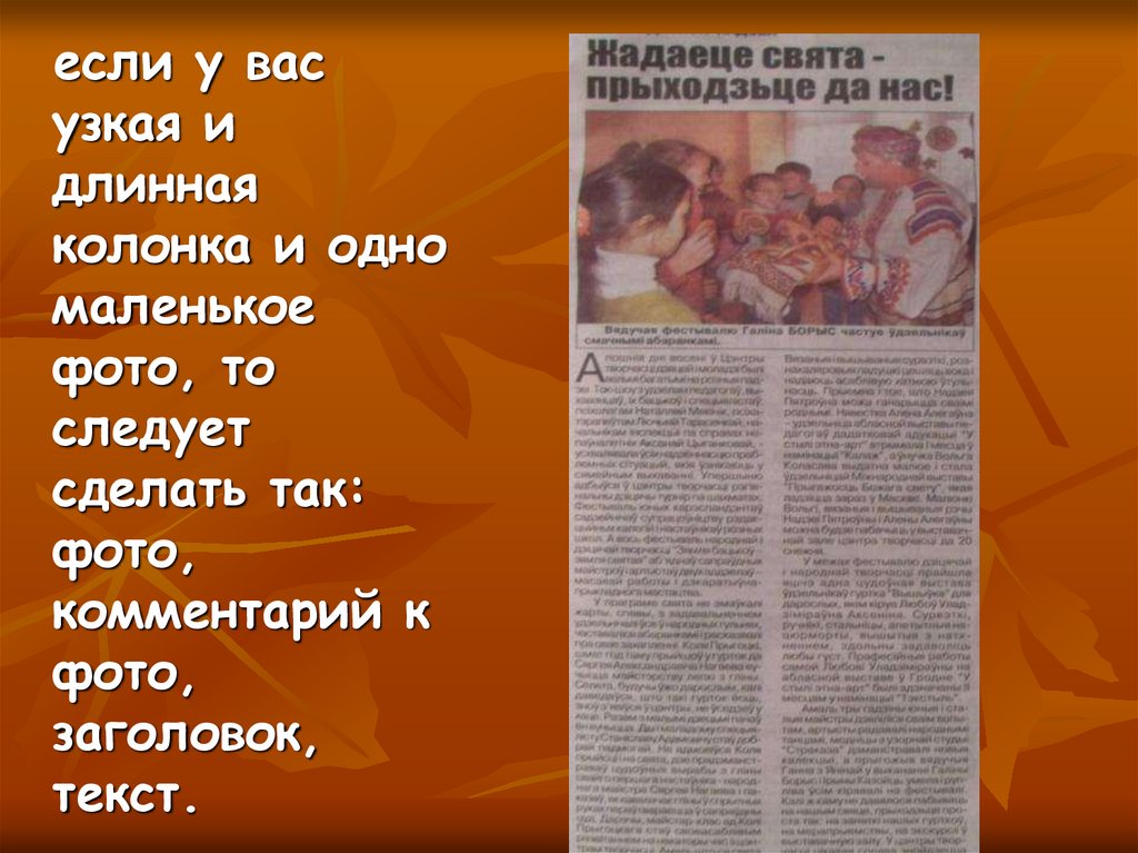 текстом. Для фотоочерка всегда нужна