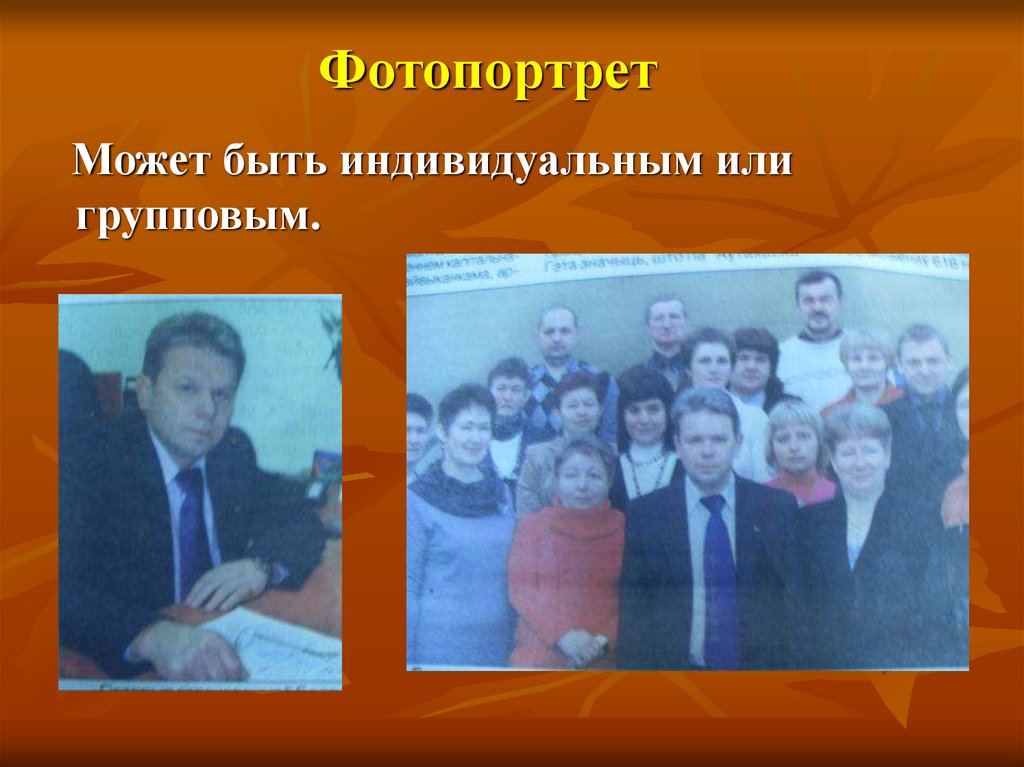 ФотопортретМожет быть индивидуальным или