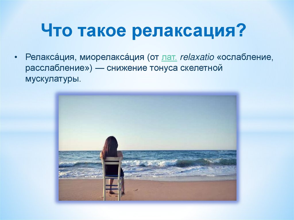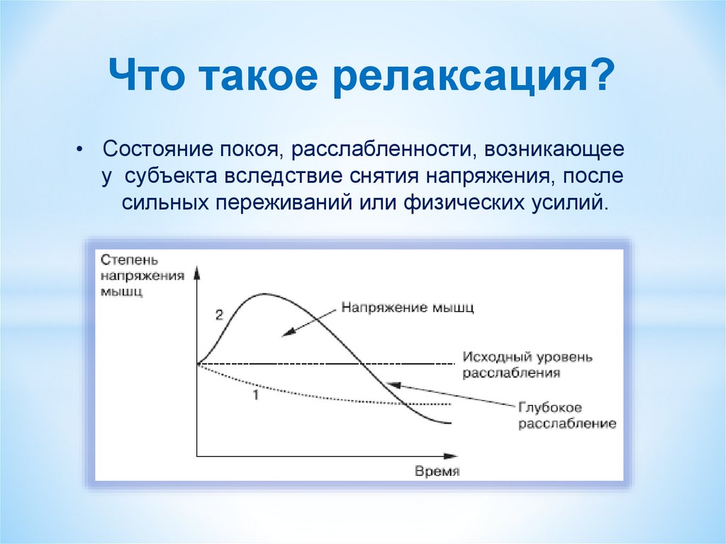 Что такое релаксация?• Релакса́ция, миорелакса́ция (от лат. relaxatio «ослабление,