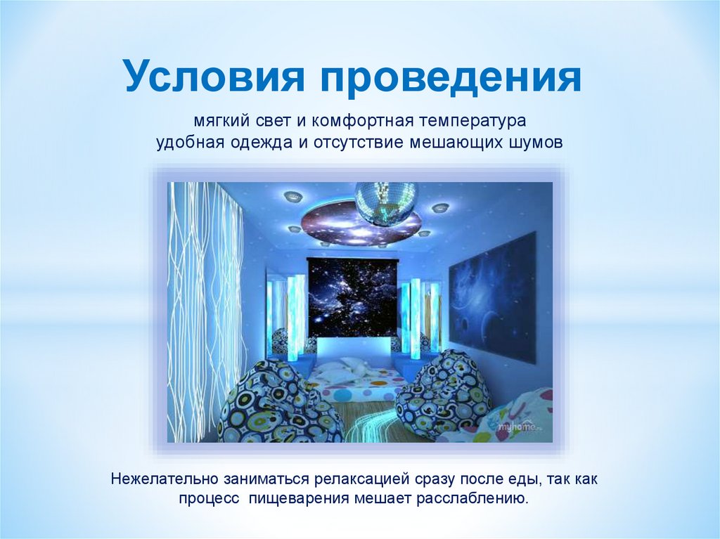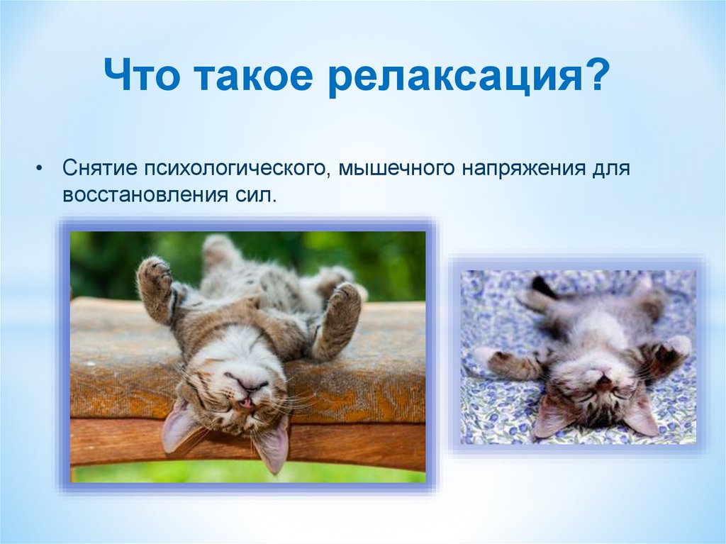 Что такое релаксация?• Состояние покоя, расслабленности, возникающее