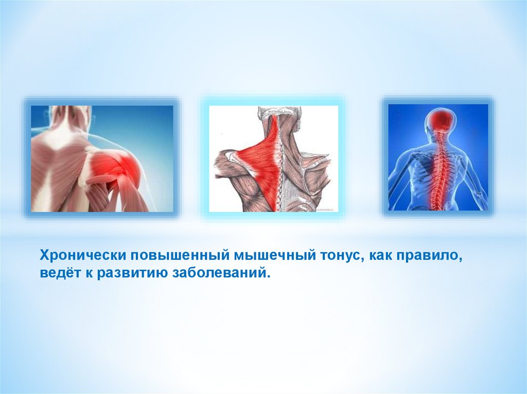 Хронически повышенный мышечный тонус, как правило,ведёт к развитию заболеваний.
