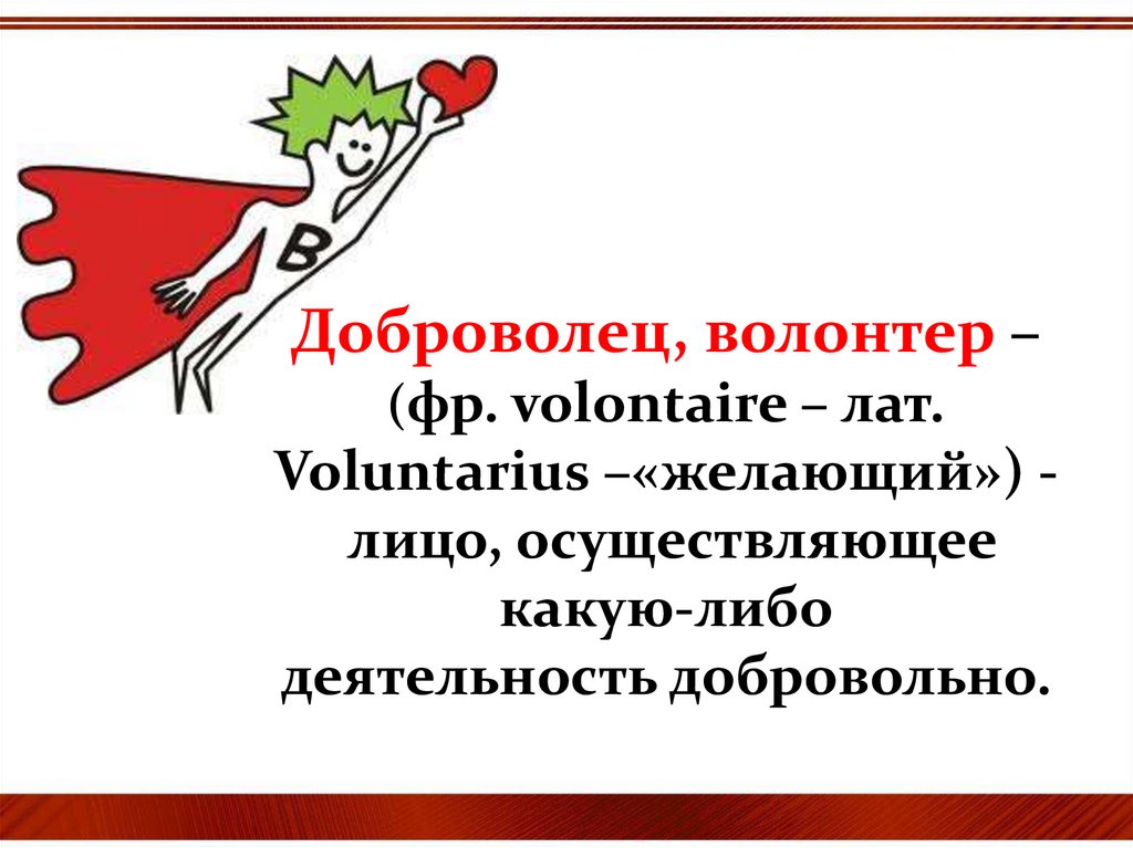Доброволец, волонтер –(фр. volontaire – лат.