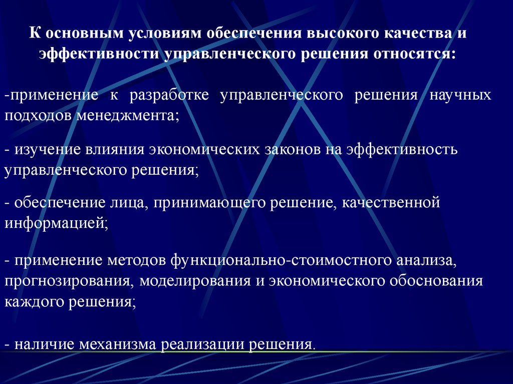 К основным условиям обеспечения высокого качества иэффективности управленческого решения относятся: