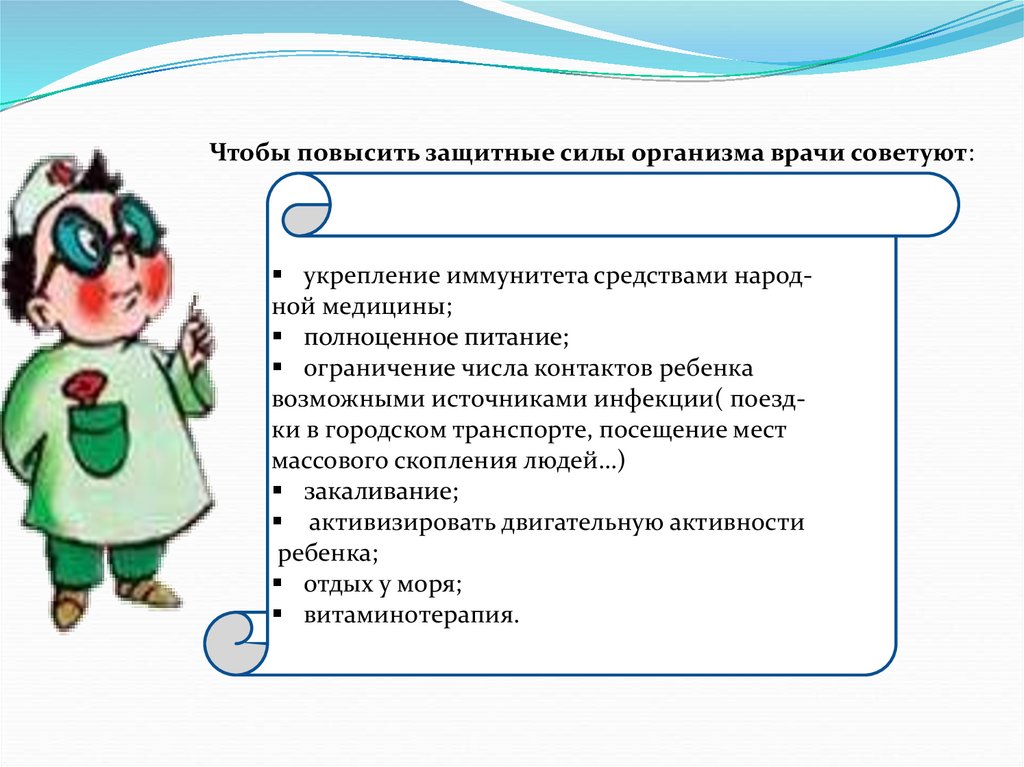 Чтобы повысить защитные силы организма врачи советуют:укрепление иммунитета средствами народной медицины;