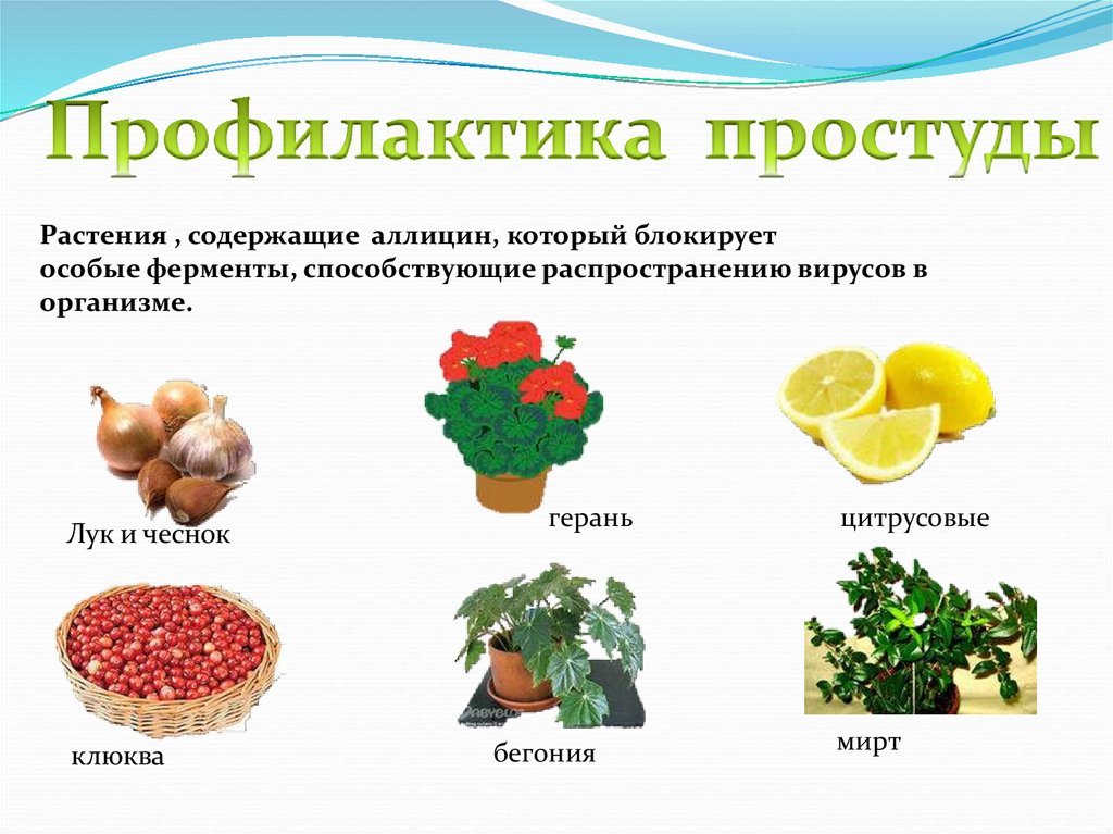 Растения , содержащие аллицин, который блокируетособые ферменты, способствующие распространению вирусов в