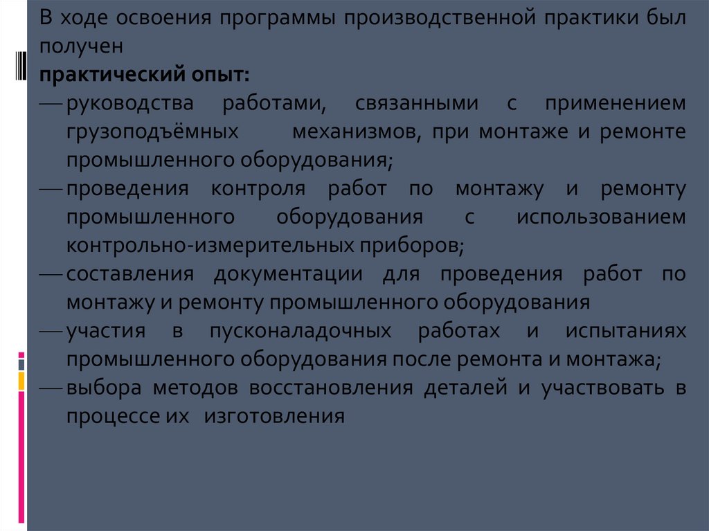 ПП.01.01. Проведение монтажных работ промышленного оборудованияи