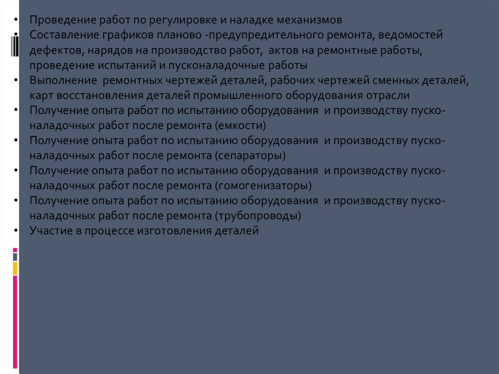 • Проведение работ по восстановлению и ремонту типовых деталей