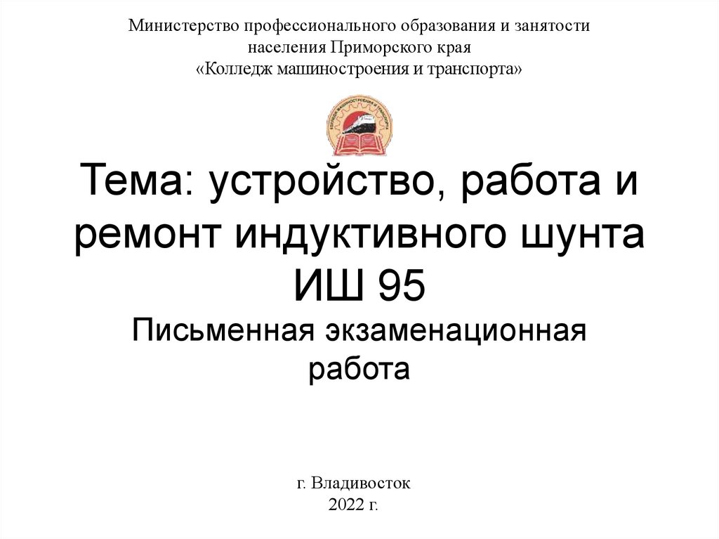 1. Тема: устройство, работа и ремонт индуктивного шунта ИШ 95