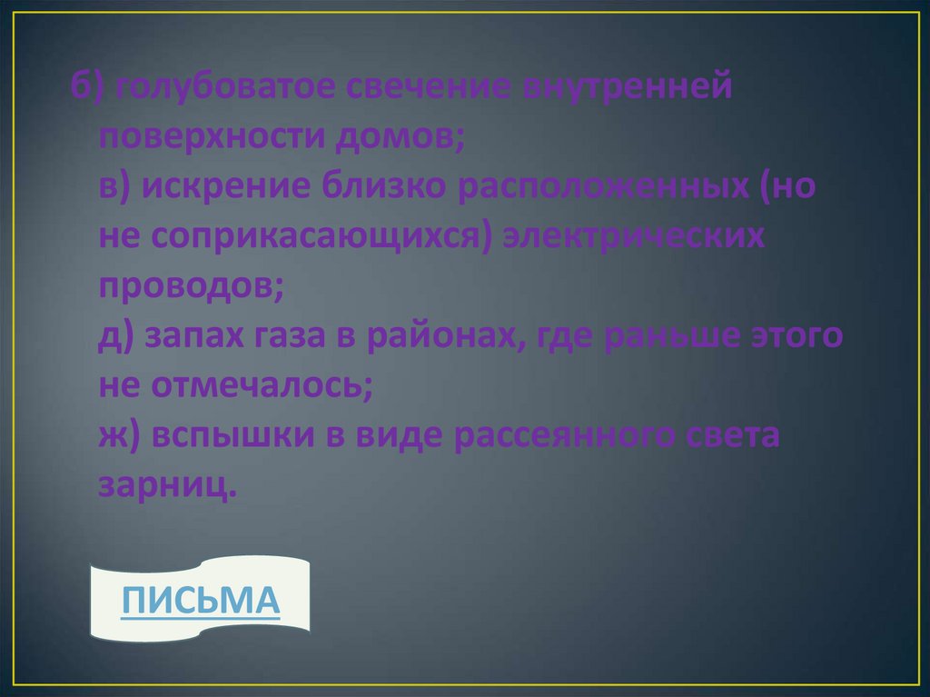24. Признаками приближающегося землетрясения могут быть следующие явления: а) резкое изменение погодных условий; б) голубоватое