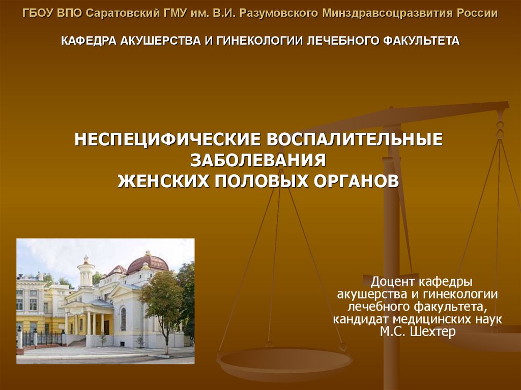 1. ГБОУ ВПО Саратовский ГМУ им. В.И. Разумовского Минздравсоцразвития России КАФЕДРА АКУШЕРСТВА И ГИНЕКОЛОГИИ ЛЕЧЕБНОГО ФАКУЛЬТЕТА