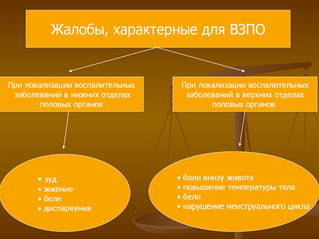 Жалобы, характерные для ВЗПОПри локализации воспалительных
