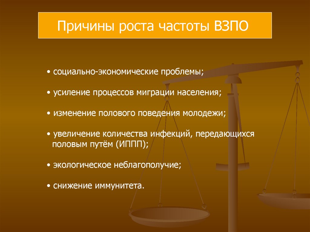 Причины роста частоты ВЗПО• социально-экономические проблемы;