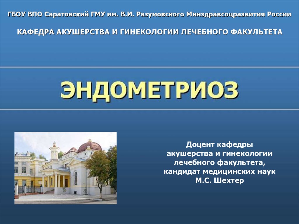 ГБОУ ВПО Саратовский ГМУ им. В.И. Разумовского Минздравсоцразвития РоссииКАФЕДРА АКУШЕРСТВА И ГИНЕКОЛОГИИ ЛЕЧЕБНОГО ФАКУЛЬТЕТА