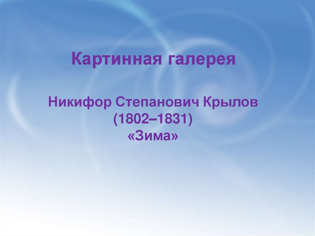 Картинная галерея. Никифор Степанович Крылов (1802–1831) «Зима»