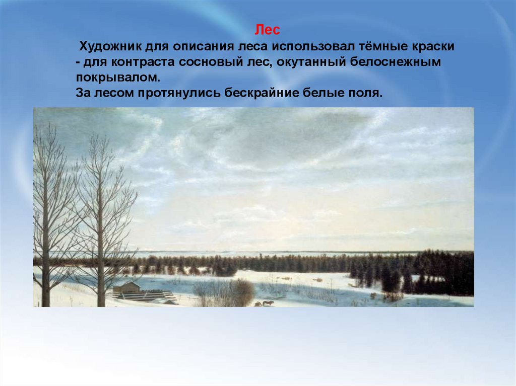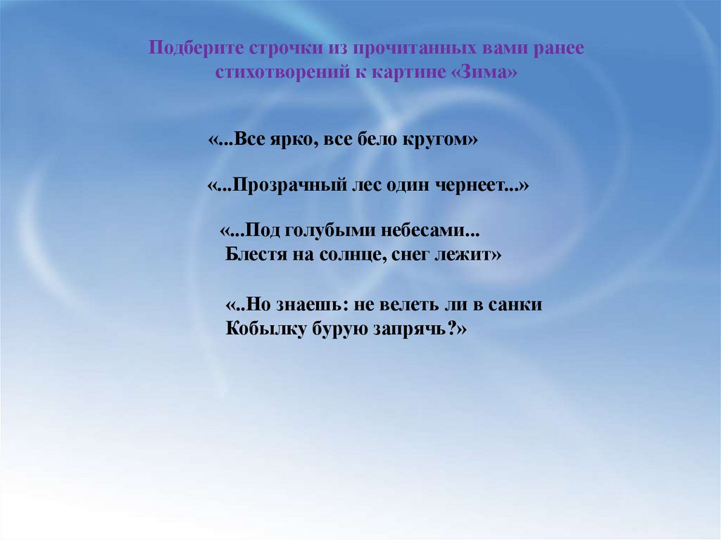 Подберите строчки из прочитанных вами ранеестихотворений к картине «Зима»