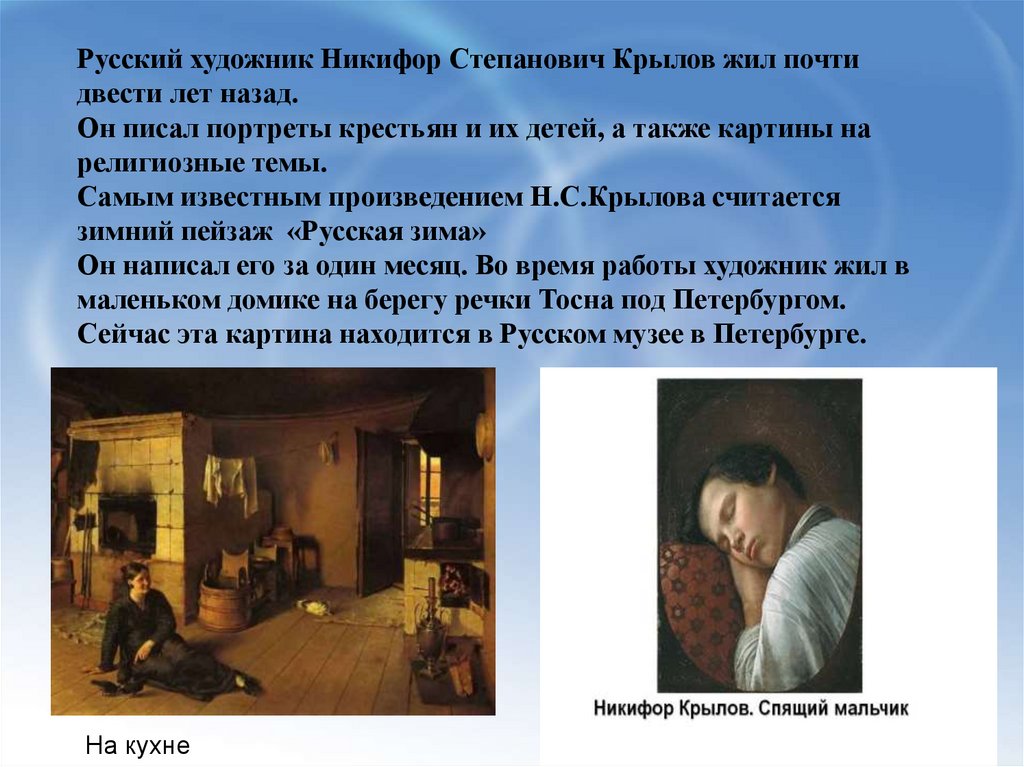 Русский художник Никифор Степанович Крылов жил почтидвести лет назад.