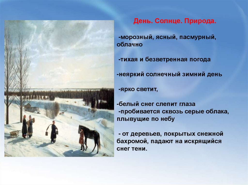 День. Солнце. Природа.-морозный, ясный, пасмурный,