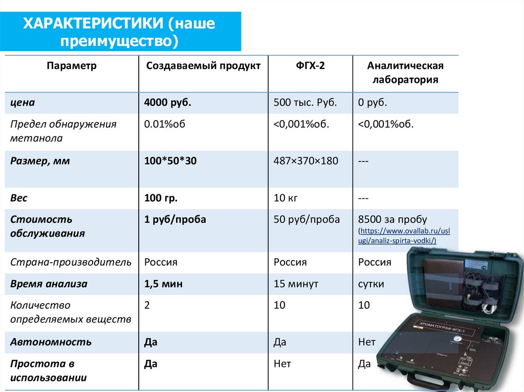 • 1) Решает проблему дешевого и доступного измерениятоксичности алкоголя, и диагностики отравления метанолом.