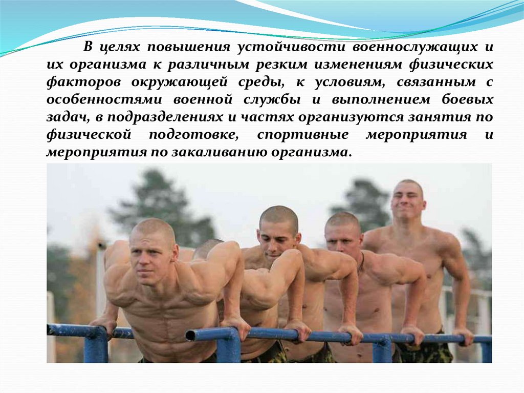 В целях повышения устойчивости военнослужащих иих организма к различным резким изменениям физических