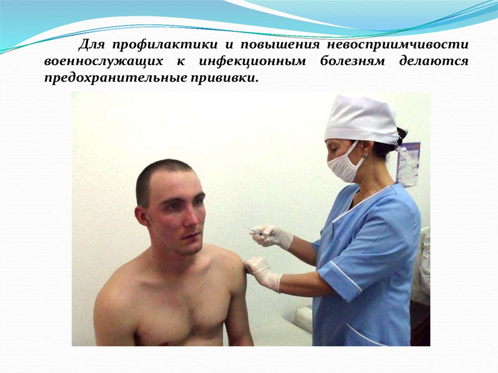 Для профилактики и повышения невосприимчивостивоеннослужащих к инфекционным болезням делаются