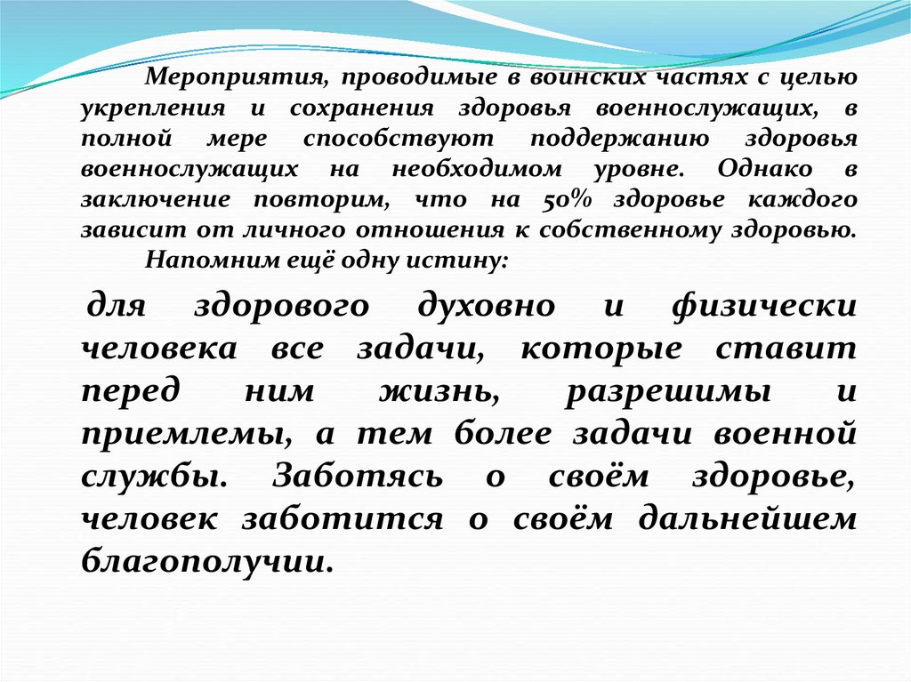 1. Сохранение и укрепление здоровья — важная часть подготовки юноши допризывного возраста к военной службе и трудовой деятельности