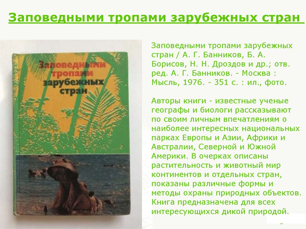 Заповедными тропами зарубежных странЗаповедными тропами зарубежных