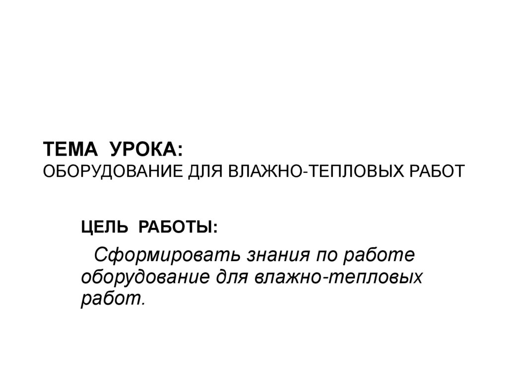 1. ТЕМА УРОКА: ОБОРУДОВАНИЕ ДЛЯ ВЛАЖНО-ТЕПЛОВЫХ РАБОТ