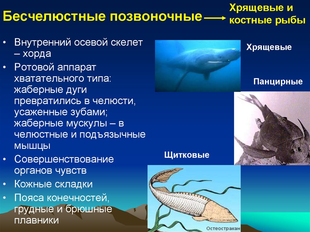 Бесчелюстные позвоночные• Внутренний осевой скелет