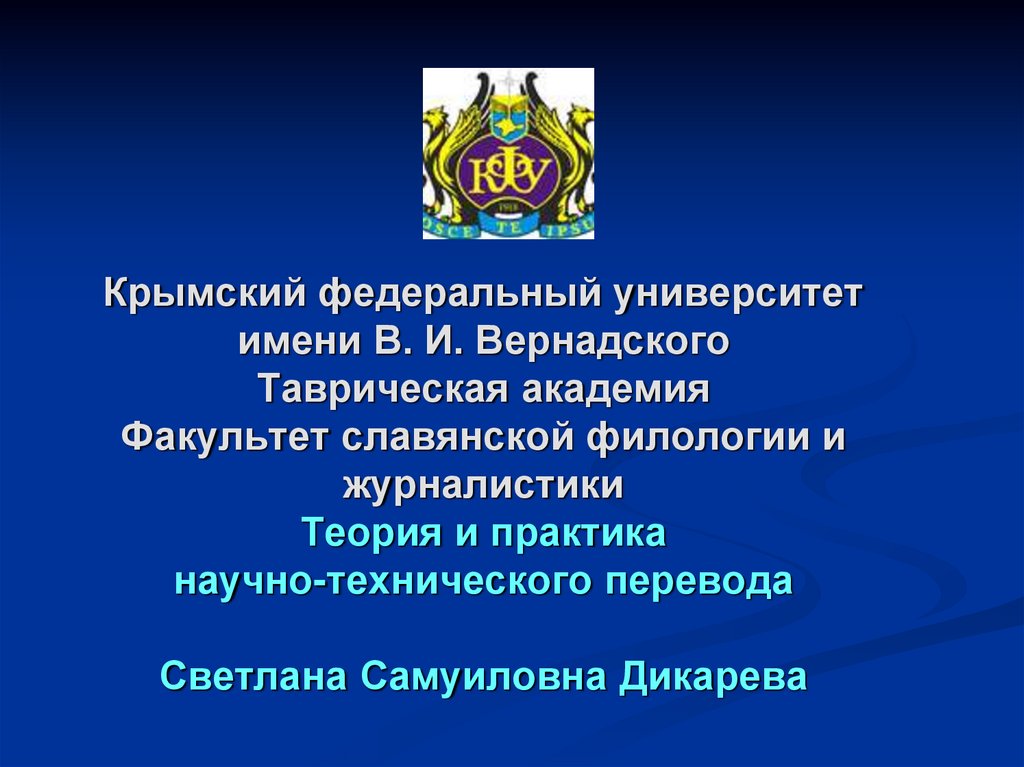 1. Крымский федеральный университет имени В. И. Вернадского Таврическая академия Факультет славянской филологии и журналистики
