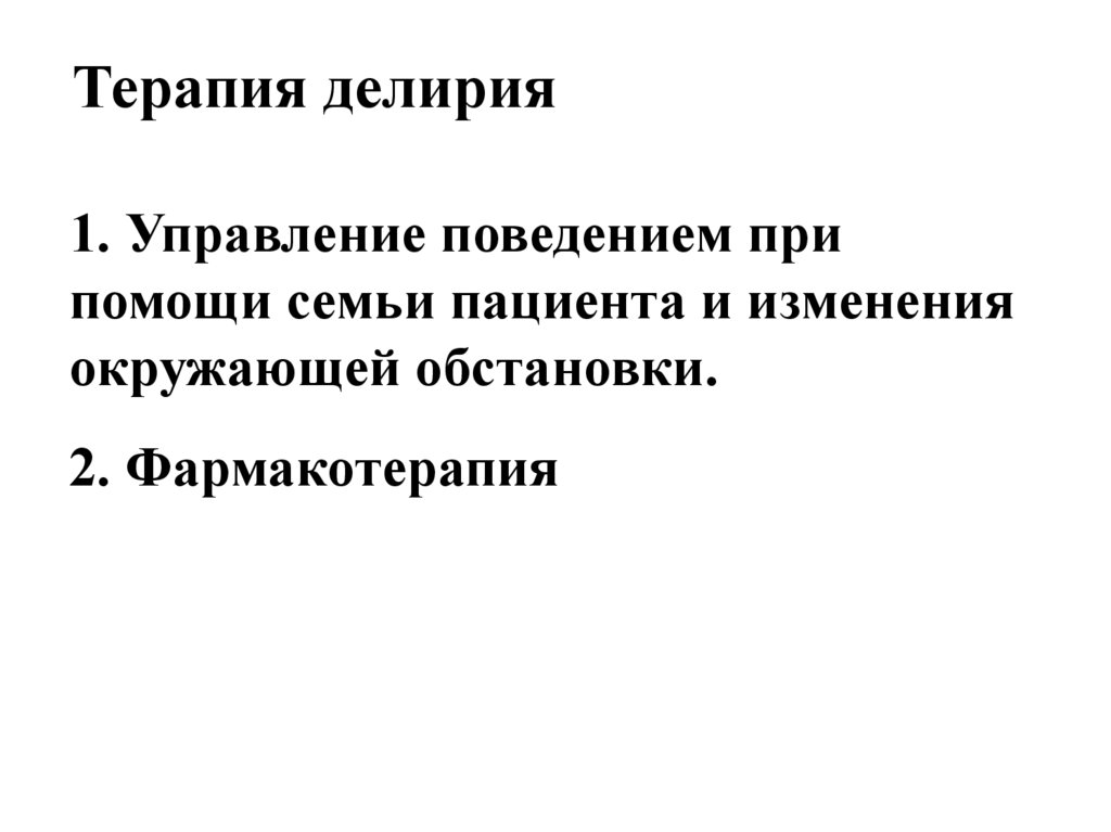 Прогноз делирияДлительность острого эпизода 19.5 +- 15.4 дней.