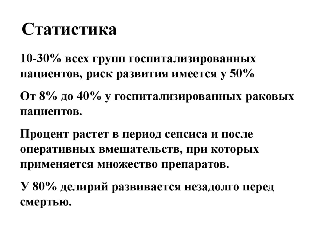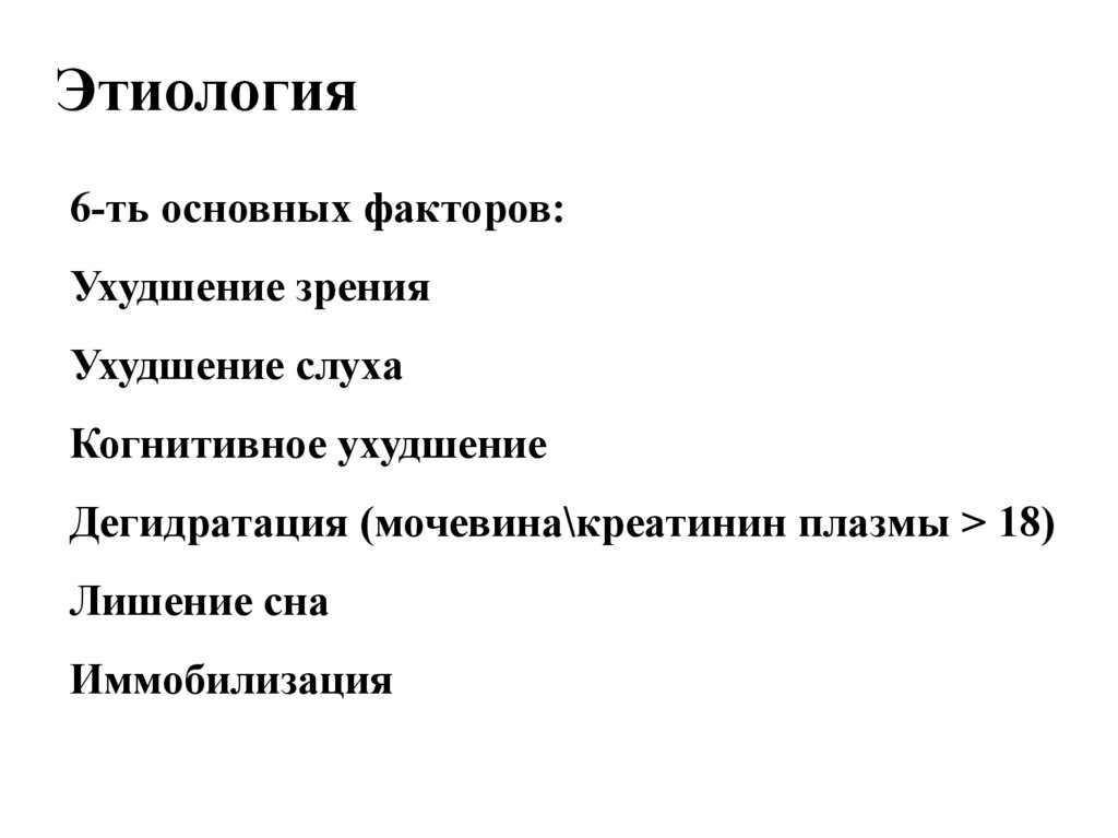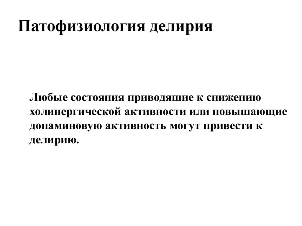 Патофизиология делирияЛюбые состояния приводящие к снижению