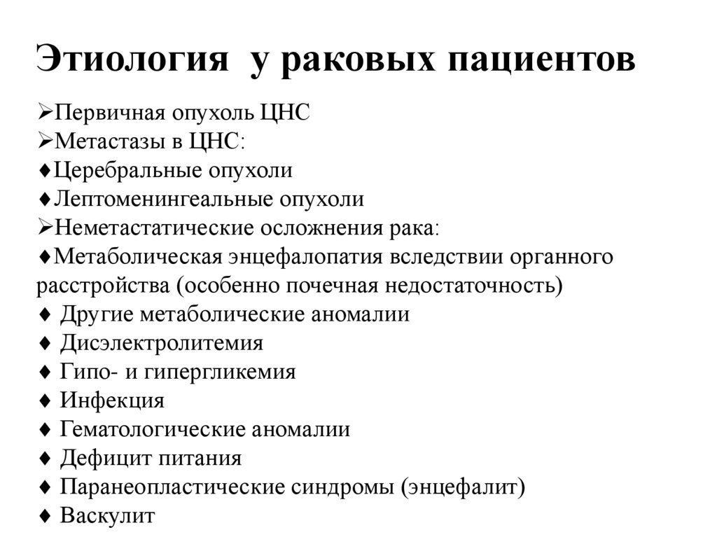 Этиология у раковых пациентовПервичная опухоль ЦНС