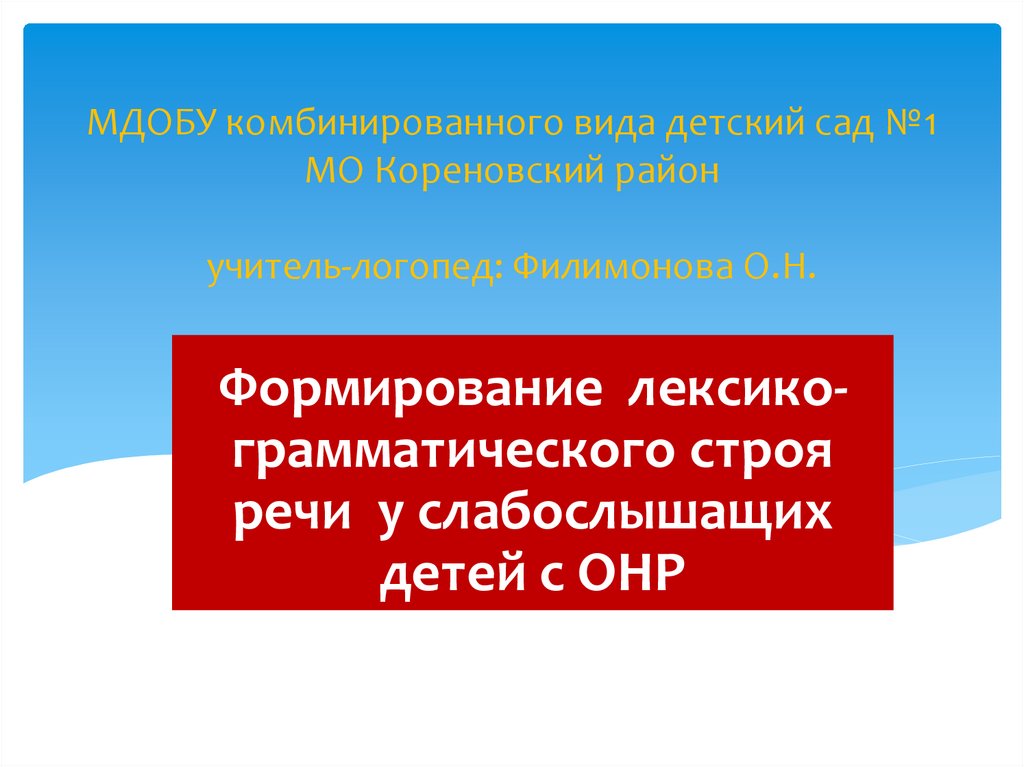 1. МДОБУ комбинированного вида детский сад №1 МО Кореновский район учитель-логопед: Филимонова О.Н.