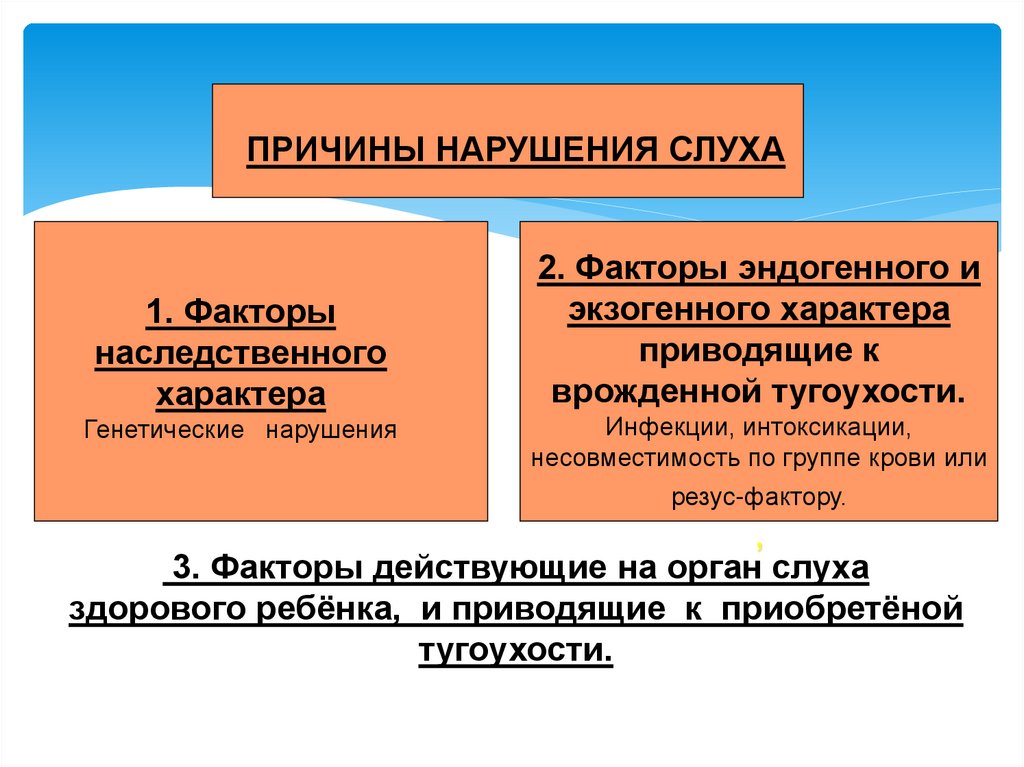 ПРИЧИНЫ НАРУШЕНИЯ СЛУХА1. Факторы