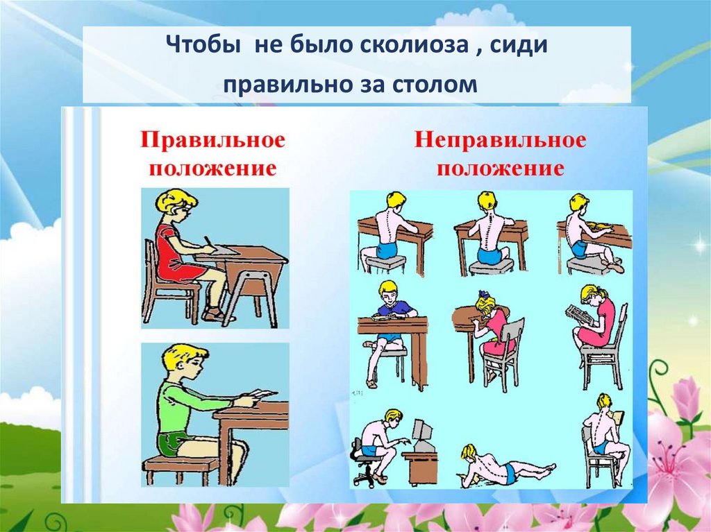 Чтобы не было сколиоза , сидиправильно за столом