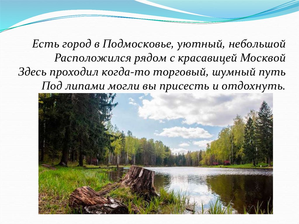 Есть город в Подмосковье, уютный, небольшойРасположился рядом с красавицей Москвой