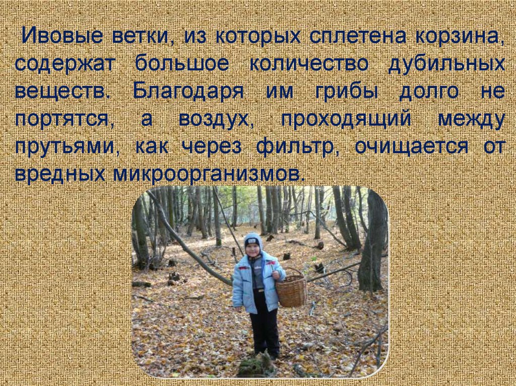 Ивовые ветки, из которых сплетена корзина,содержат большое количество дубильных