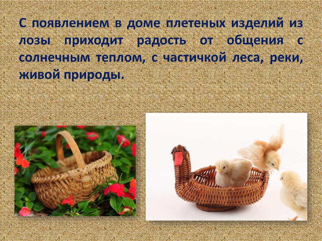 С появлением в доме плетеных изделий излозы приходит радость от общения с