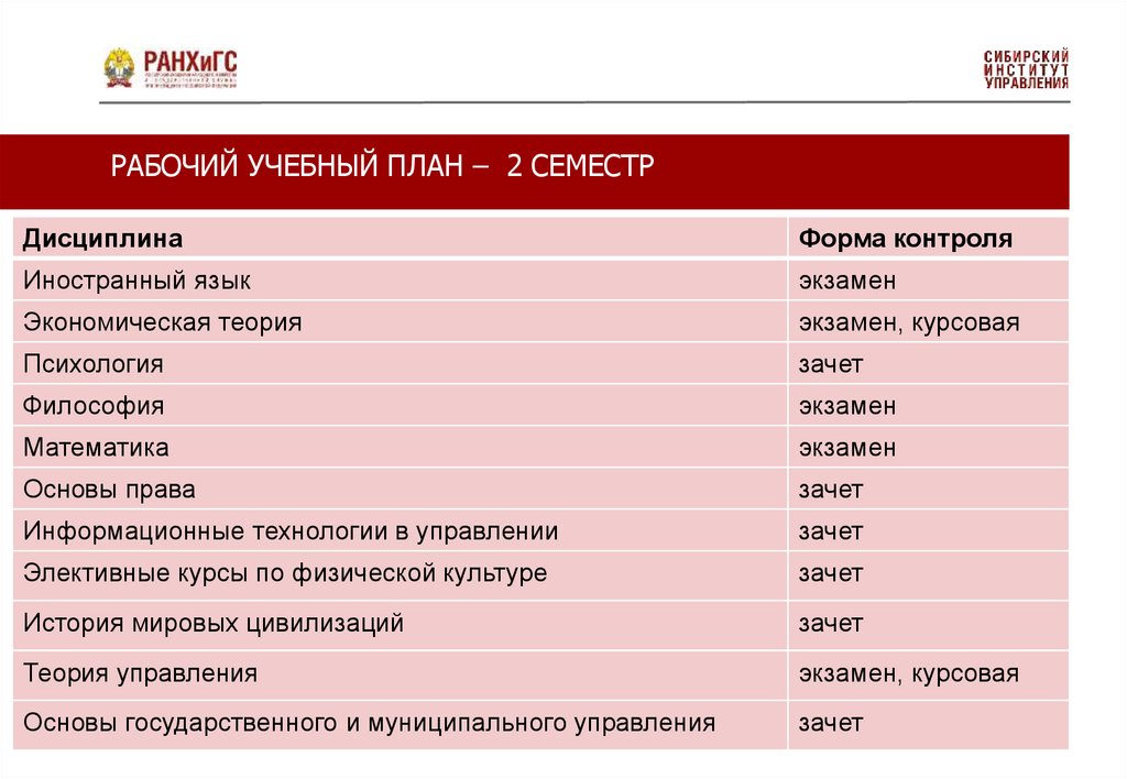 РАБОЧИЙ УЧЕБНЫЙ ПЛАН – 2 СЕМЕСТРДисциплина