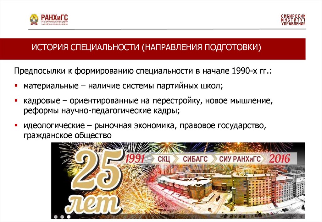 ИСТОРИЯ СПЕЦИАЛЬНОСТИ (НАПРАВЛЕНИЯ ПОДГОТОВКИ)Предпосылки к формированию специальности в начале 1990-х гг.:
