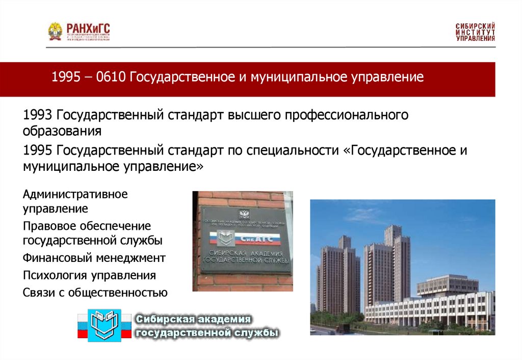 1995 – 0610 Государственное и муниципальное управление1993 Государственный стандарт высшего профессионального